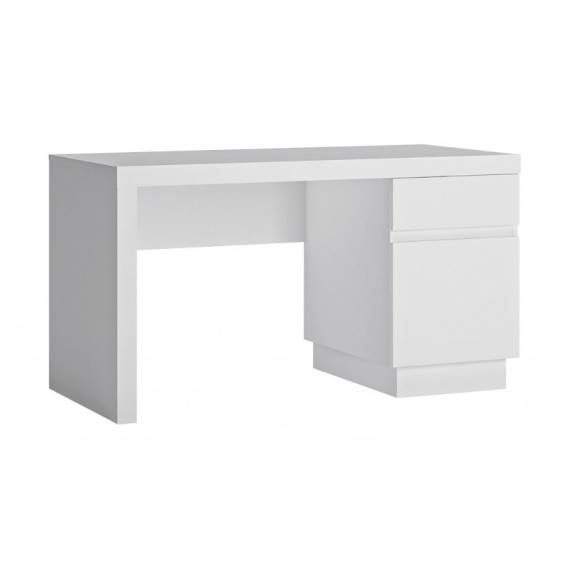 Funkcjonalność mebel zawdzięcza pojemnej szufladzie wyposażonej w system cichego domyku oraz przestronnej szafce, która jest idealna do podręcznego przechowywania, wszystkiego, co potrzebne do nauki lub pracy w jednym miejscu.