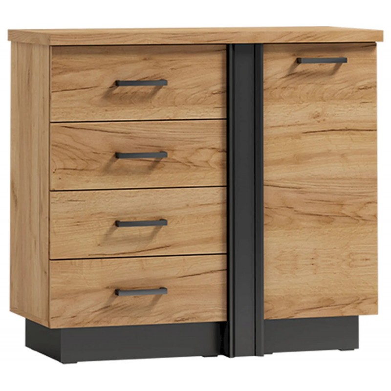 Dzięki swojej pojemności i praktycznej konstrukcji, komoda Magnum doskonale sprawdzi się w przechowywaniu ubrań, akcesoriów czy innych drobnych przedmiotów. Cztery obszerne szuflady oraz szafka zapewniają wiele miejsca do uporządkowania rzeczy, jednocześnie utrzymując porządek w Twoim pomieszczeniu.