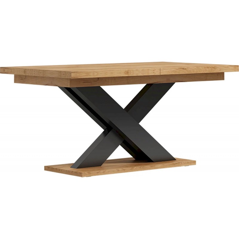 Stół, który stanowi połączenie elegancji, funkcjonalności oraz wyjątkowego wzornictwa. Jego wyjątkowość tkwi w harmonijnym połączeniu dwóch kolorów: ciepłego dębu craft i głębokiego czarnego. To zestawienie nadaje stołowi nowoczesnego charakteru, doskonale pasując do różnych aranżacji wnętrz.
