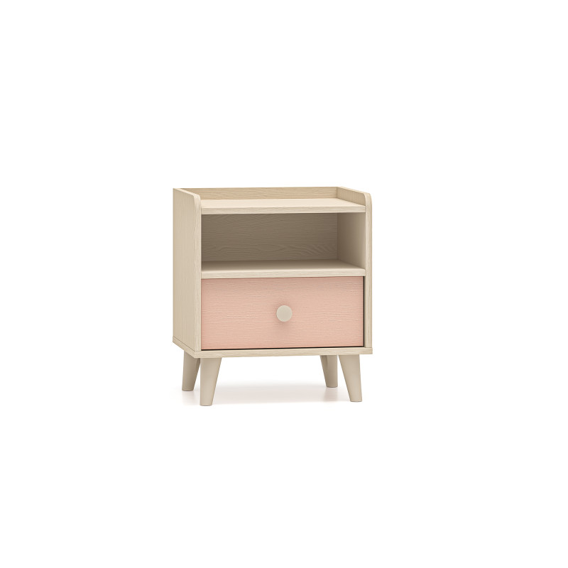 Szafka dostępna jest w dwóch modnych kombinacjach kolorystycznych: Millenial Pink z Piaskiem Pustyni oraz Szary Pallad z Piaskiem Pustyni, dzięki czemu łatwo dopasować ją do różnych aranżacji wnętrz. Wyposażona w pojemną szufladę z pełnym wysuwem, umożliwia wygodne przechowywanie niezbędnych przedmiotów przy łóżku. Obrzeża wykończone ABS zwiększają odporność na uszkodzenia mechaniczne, a kompaktowe wymiary (szerokość 45 cm, wysokość 52 cm, głębokość 36 cm) sprawiają, że szafka idealnie sprawdzi się nawet w niewielkich przestrzeniach.