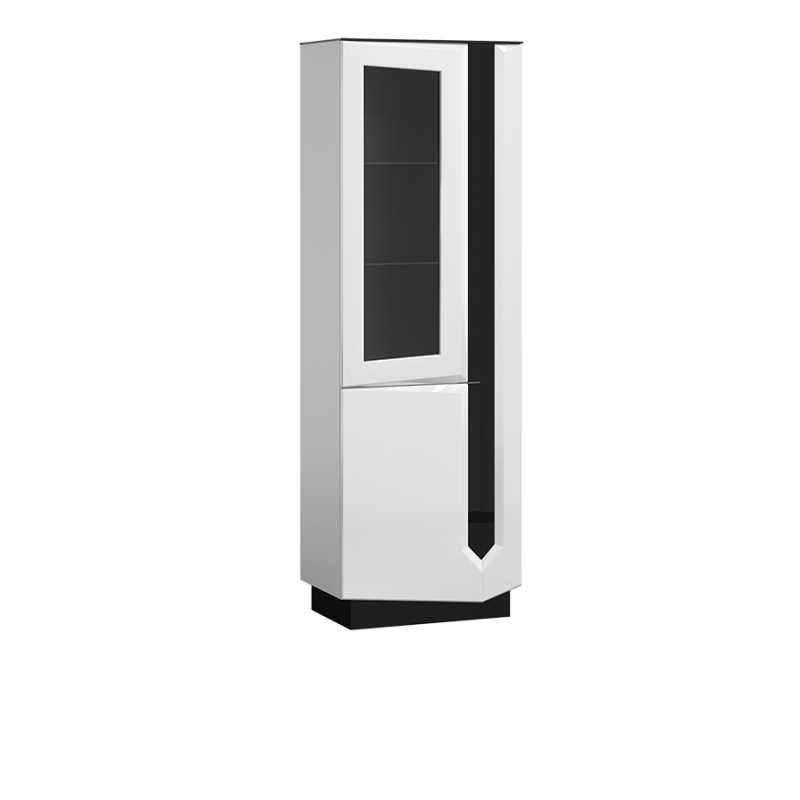 Witryna Mistic Art. 8 od Meble Gołąb to elegancki mebel, który doskonale wpisuje się w nowoczesne aranżacje wnętrz. Jej futurystyczny design łączy klasyczną biel z czarnymi szklanymi wstawkami, nadając pomieszczeniu unikalny charakter. Witryna została zaprojektowana z myślą o funkcjonalności, oferując przestronny regał z półkami za przeszklonym frontem do przechowywania oraz eksponowania przedmiotów.