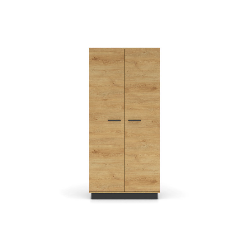 Wyposażona w dwie pojemne półki oraz drążek na wieszaki, szafa zapewnia doskonałe warunki do organizacji odzieży, akcesoriów i innych przedmiotów. Jej wnętrze jest zaprojektowane z myślą o maksymalnym wykorzystaniu przestrzeni, umożliwiając wygodne przechowywanie ubrań zarówno wiszących, jak i składanych. Obrzeża ABS oraz solidna konstrukcja gwarantują trwałość i odporność na codzienne użytkowanie, co sprawia, że mebel posłuży przez lata.