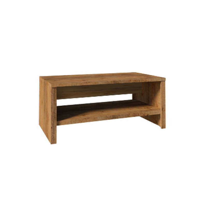 Ława wyposażona jest w praktyczną półkę pod blatem, która umożliwia przechowywanie czasopism, pilotów czy innych drobnych przedmiotów, utrzymując porządek na blacie. Prosta i solidna konstrukcja oraz brak uchwytów podkreślają nowoczesny design mebla.