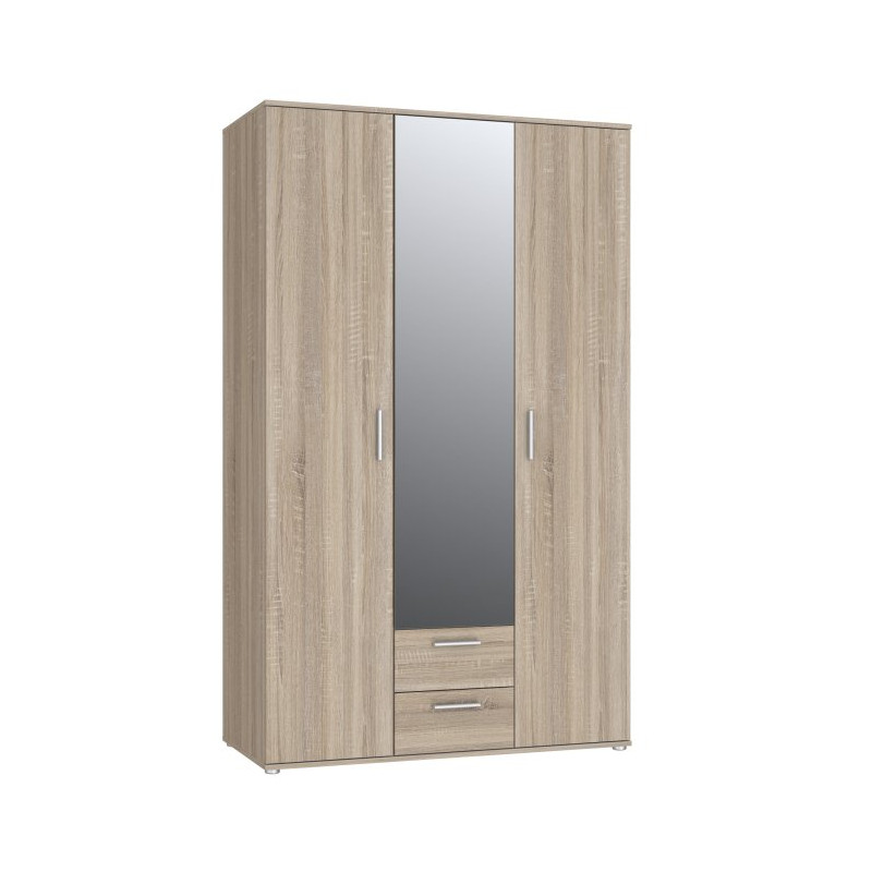 Kompaktowa forma szafy sprawia, że dobrze sprawdzi się w sypialni, przedpokoju lub pokoju młodzieżowym. To mebel, który łączy codzienne przechowywanie ubrań z funkcją użytkową lustra, ograniczając potrzebę dodatkowych elementów wyposażenia.