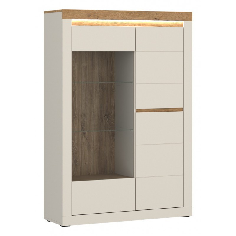 Witryna NAXV03L z kolekcji Naxxar marki Meble Wójcik to elegancki mebel do salonu lub jadalni, który łączy funkcję przechowywania z możliwością estetycznej ekspozycji dekoracji, szkła lub zastawy. Jej średniej wysokości bryła prezentuje się lekko i nowocześnie, a jednocześnie pozwala wygodnie zagospodarować przestrzeń w pomieszczeniu. To model, który dobrze sprawdza się zarówno jako samodzielny element wyposażenia, jak i część większego zestawu mebli z tej samej kolekcji.