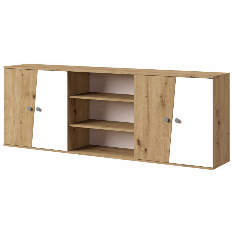 Nadstawka półkotapczanu Nero została wykonana z wysokiej jakości płyty meblowej laminowanej o grubości 16 mm, która jest odporna na zarysowania i wilgoć. Obrzeża mebla wykończone są okleiną ABS, co dodatkowo podnosi jego trwałość. Elegancka kolorystyka w odcieniach dąb artisan + biały + szare uchwyty nadają meblowi nowoczesny, a zarazem uniwersalny wygląd. Fronty do wyboru: matowe lub połyskujące.