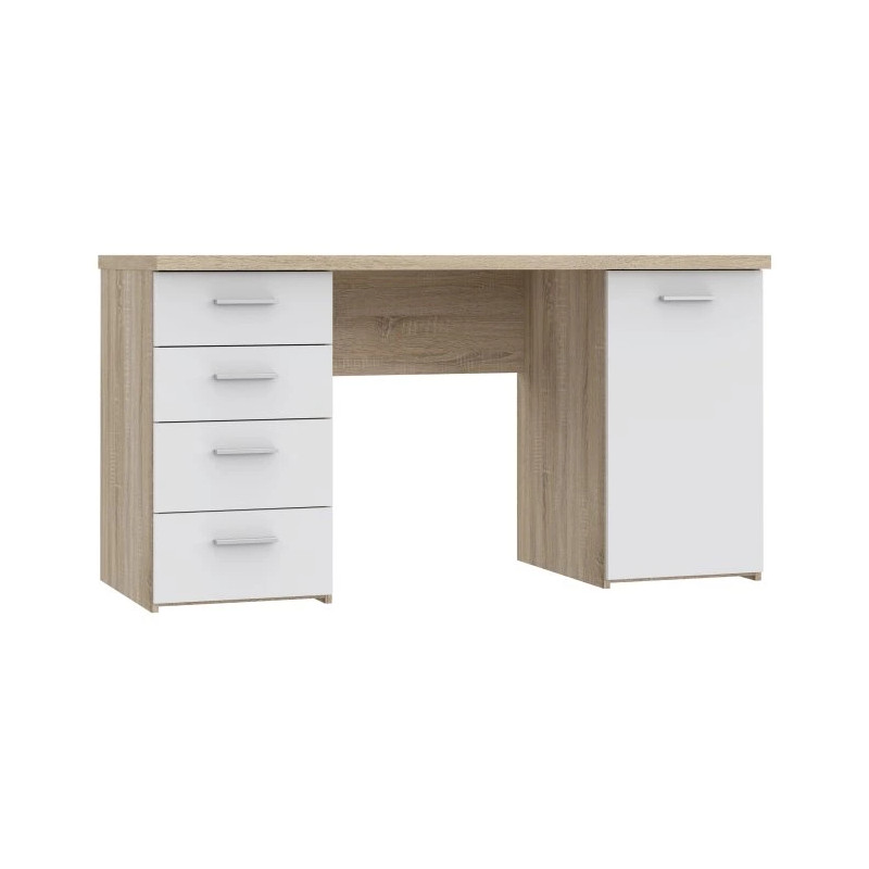 Biurko dekor drewno/biel to funkcjonalny i estetyczny element wyposażenia każdego domowego biura oraz pokoju młodzieżowego. Połączenie naturalnego dekoru drewna z bielą tworzy delikatny, świeży i elegancki charakter, który sprawdzi się w wielu stylach aranżacyjnych — od skandynawskich po nowoczesne. Solidny blat oferuje dużą przestrzeń do pracy z komputerem, nauki czy organizacji dokumentów. Pojemne szuflady i zamykana szafka pozwalają na wygodne przechowywanie wszystkich niezbędnych przedmiotów biurowych, książek czy materiałów szkolnych.