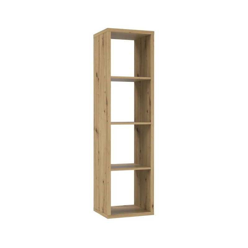 Wąski regał otwarty NET106 w dekorze Dąb Artisan to elegancki i praktyczny mebel, który idealnie sprawdzi się zarówno w nowoczesnych, jak i klasycznych wnętrzach. Imitujący naturalne drewno dekor nadaje mu wyjątkowego charakteru, a minimalistyczna bryła ułatwia aranżację nawet w niewielkich przestrzeniach. Dzięki czterem wnękom regał oferuje odpowiednio dużo miejsca na książki, rośliny i dekoracje, tworząc przy tym spójną i przytulną atmosferę w pomieszczeniu.