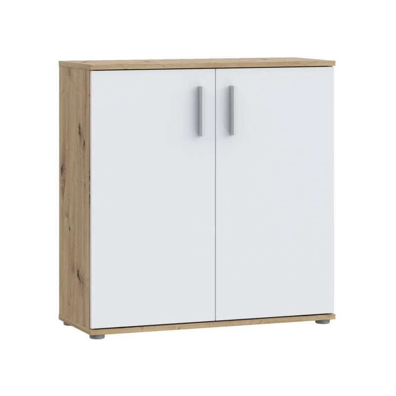 Szafka 2-drzwiowa 80 cm Dąb Artisan/Biały to praktyczny i stylowy mebel, który doskonale sprawdzi się zarówno w domu, jak i w biurze. Dzięki swojej kompaktowej formie i uniwersalnemu designowi świetnie pasuje do wnętrz w stylu skandynawskim, nowoczesnym oraz klasycznym. Dwa fronty szafki skutecznie ukrywają zawartość, zapewniając porządek i dyskrecję. Szafka świetnie sprawdzi się jako miejsce do przechowywania dokumentów, tekstyliów, akcesoriów czy drobnych przedmiotów codziennego użytku. Połączenie dekoru Dąb Artisan z bielą wprowadza do wnętrza naturalne ciepło i elegancję.