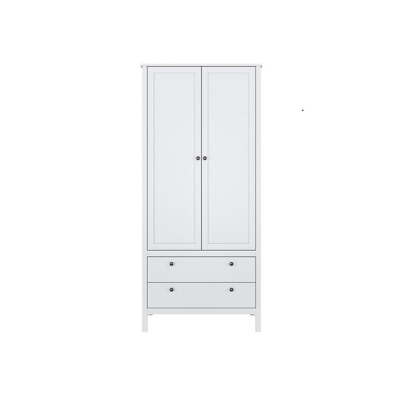 Szafa dwudrzwiowa z 2 szufladami OLE to pojemny i uniwersalny mebel do sypialni, pokoju dziecięcego, młodzieżowego, garderoby, a także przedpokoju. Duża przestrzeń na ubrania do zawieszenia oraz dodatkowe szuflady zapewniają wygodne przechowywanie i pomagają lepiej zorganizować codzienne rzeczy. To biała szafa z szufladami, która łączy praktyczność z prostą, uporządkowaną formą.