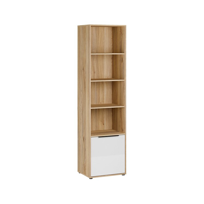 Wysoki regał Orkney OKYR711 dąb mauvella/biały połysk