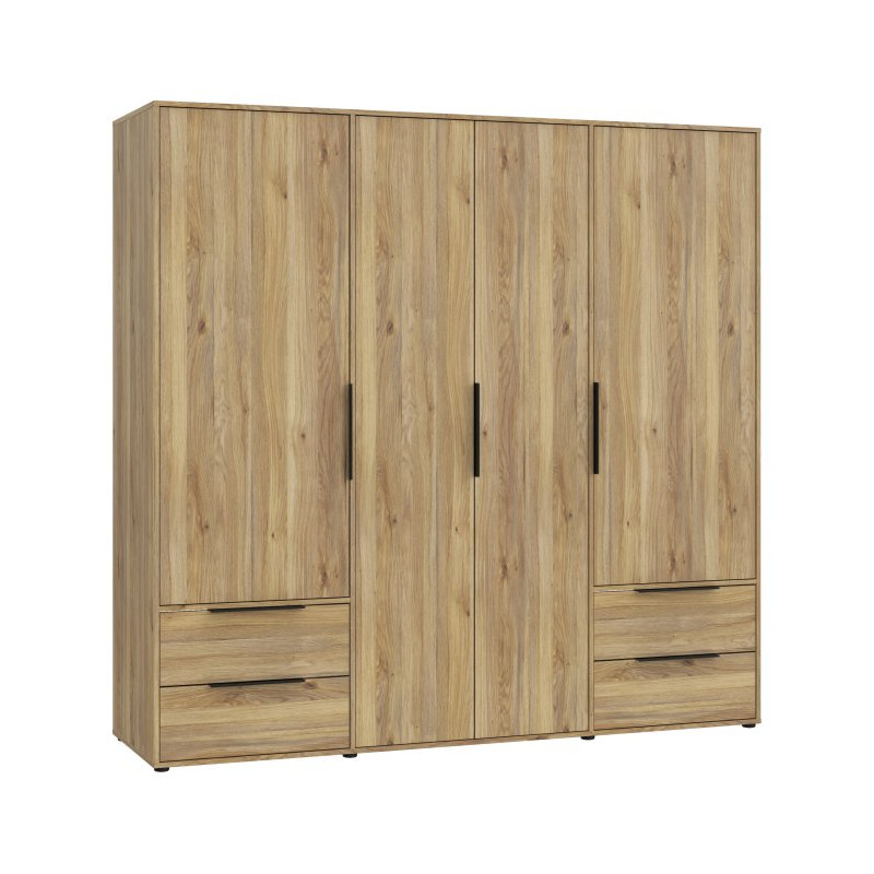 Szafa Orkney OKYS841 to przestronny i funkcjonalny mebel, który doskonale sprawdzi się w większej sypialni lub garderobie. Jej szerokość ponad 200 cm pozwala wygodnie przechowywać całą garderobę w jednym miejscu, a klasyczna forma z nowoczesnymi detalami dobrze wpisuje się w różne aranżacje wnętrz.