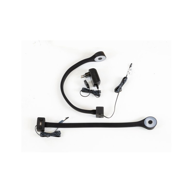 Lampka została wyposażona w elastyczne ramię, które umożliwia precyzyjne ustawienie kierunku światła – idealne do czytania lub wieczornego relaksu. Dwa punkty świetlne generują jasność ok. 180 lumenów przy niskim poborze mocy, co zapewnia energooszczędność i wygodę użytkowania.