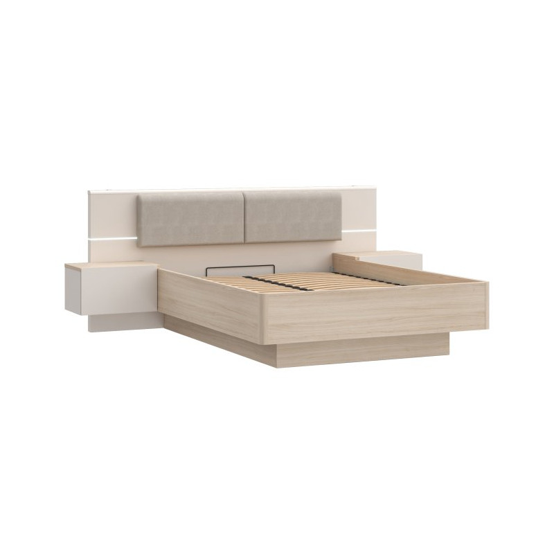 Łóżko z szafkami nocnymi 140x190 cm Panoptik PNPL3141B dąb riva / piaskowy