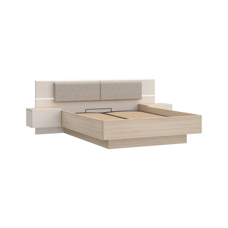 Łóżko z szafkami nocnymi 140x190 cm Panoptik PNPL3141B dąb riva / piaskowy