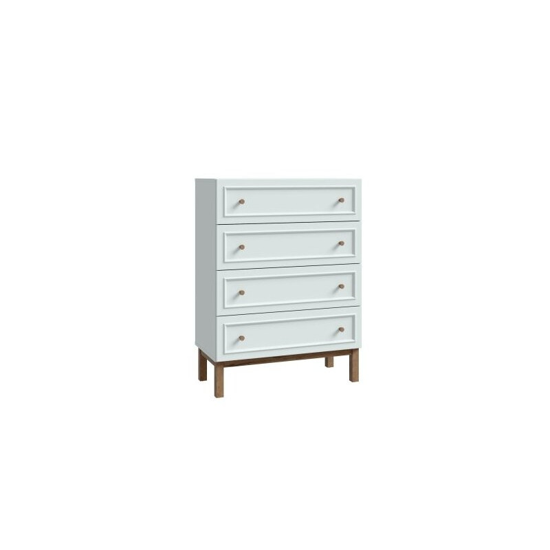 Praktyczne szuflady zapewniają łatwy dostęp do zawartości i ułatwiają organizację. Nowoczesna forma oraz staranne wykonanie sprawiają, że komoda łączy estetykę z trwałością, dopasowując się do różnych aranżacji wnętrz.