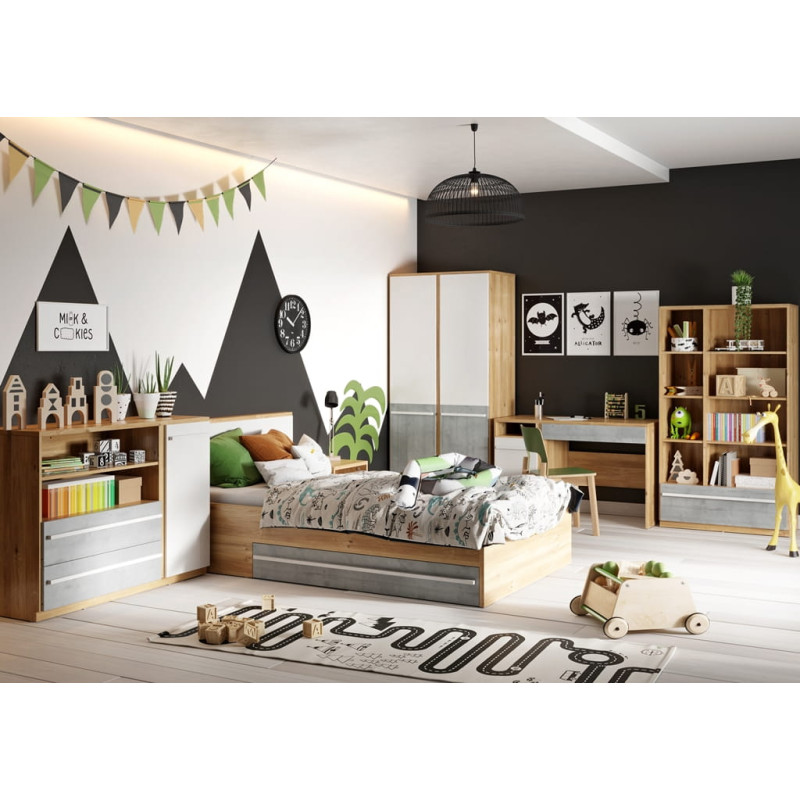 Zestaw mebli dziecięcych PLANO – Dąb Nash / Biały / Beton
