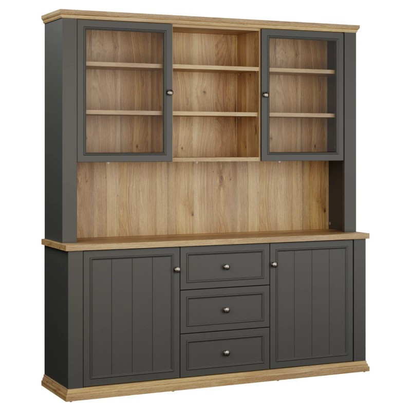 Kredens z nadstawką bufet Pontypool PNTR731 dąb mauvella/uni wolfram szary
