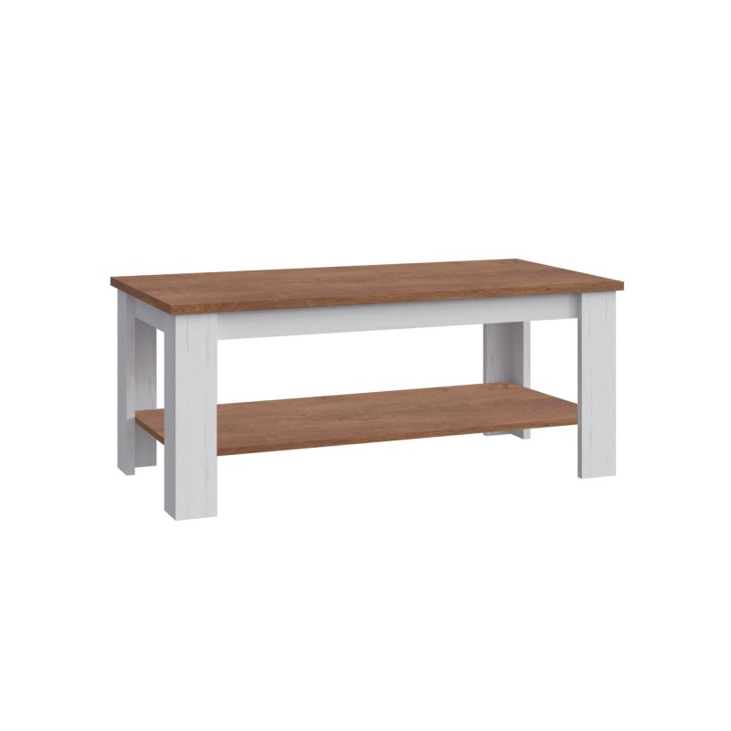 Ława Prowansja ST2 od Gała Meble to elegancki stolik kawowy inspirowany stylem prowansalskim, który łączy funkcjonalność z estetyką. Wykonana z płyty laminowanej odpornej na uszkodzenia, dostępna jest w trzech wariantach kolorystycznych (dostępne w osobnych kartach): Sosna Andersen z akcentami Dębu Lefkas, Green oraz Grey, co pozwala na dopasowanie do różnych aranżacji wnętrz.