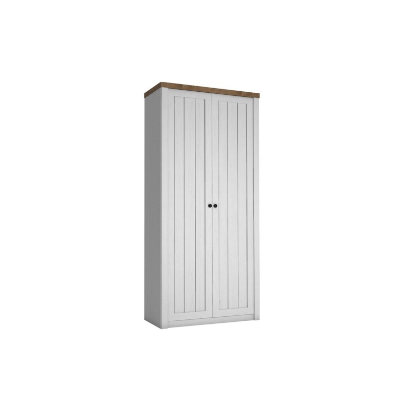 Szafa wyposażona jest w drążek na ubrania, co umożliwia wygodne przechowywanie odzieży. Metalowe uchwyty dodają jej uroku i podkreślają styl prowansalski.