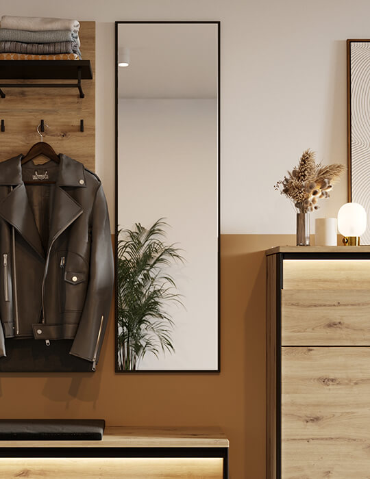 Ponadto, nasze wąskie lustro ma także praktyczne zastosowanie. To idealne miejsce, aby przed wyjściem z domu szybko spojrzeć na siebie i upewnić się, że wyglądasz doskonale. Jeśli poszukujesz eleganckiego, stylowego i użytecznego elementu dla swojego przedpokoju, wąskie lustro to doskonały wybór. Przekonaj się sam, dlaczego nasze lustrzane rozwiązanie do przedpokoju to trafny wybór i pozwól mu nadać charakteru i rozświetlić Twoje pomieszczenie.