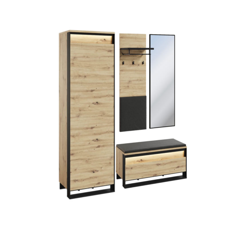 Zestaw QUANT to doskonały wybór dla osób ceniących sobie styl loftowy, funkcjonalność i wysoką jakość wykonania. Idealnie sprawdzi się zarówno w przestronnych, jak i mniejszych przedpokojach, wprowadzając do wnętrza elegancję i porządek.