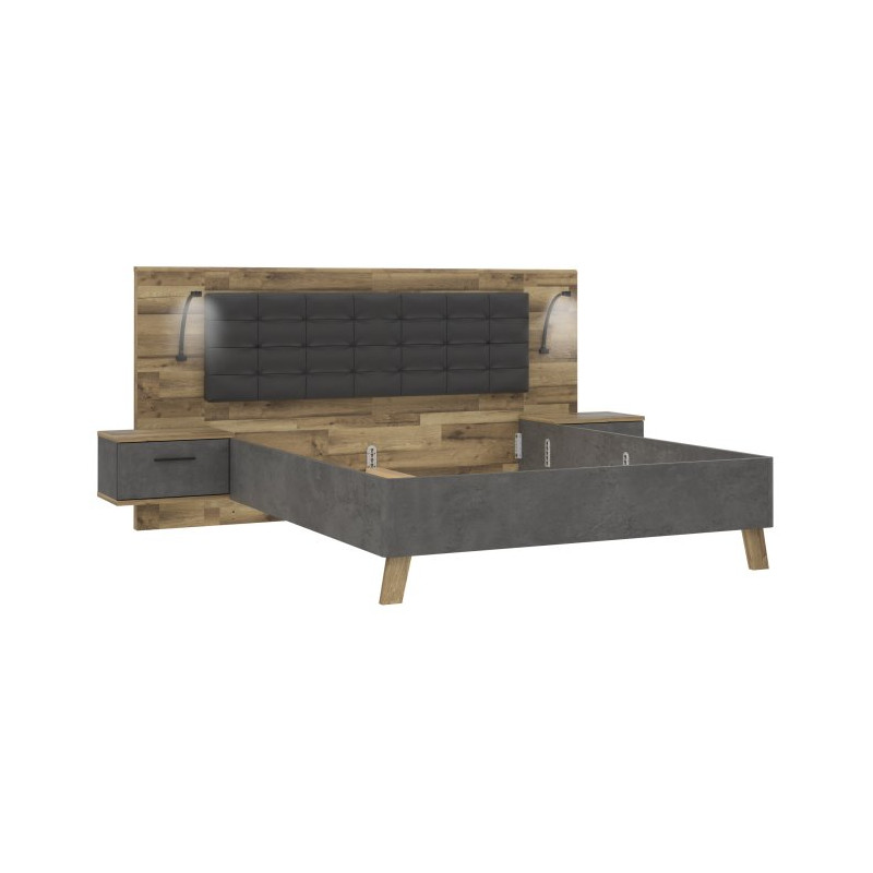 Łóżko + szafki nocne Ricciano RCQL1164B beton ciemnoszary/dąb klepkowy