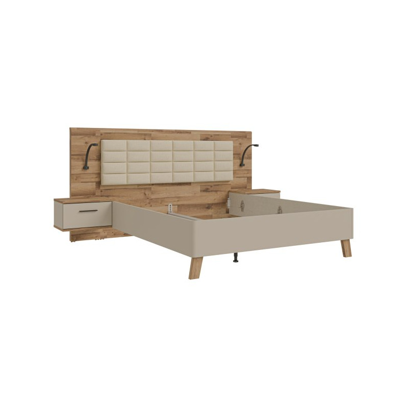 Łóżko + szafki nocne Ricciano RCQL1164B piaskowy/dąb klepkowy