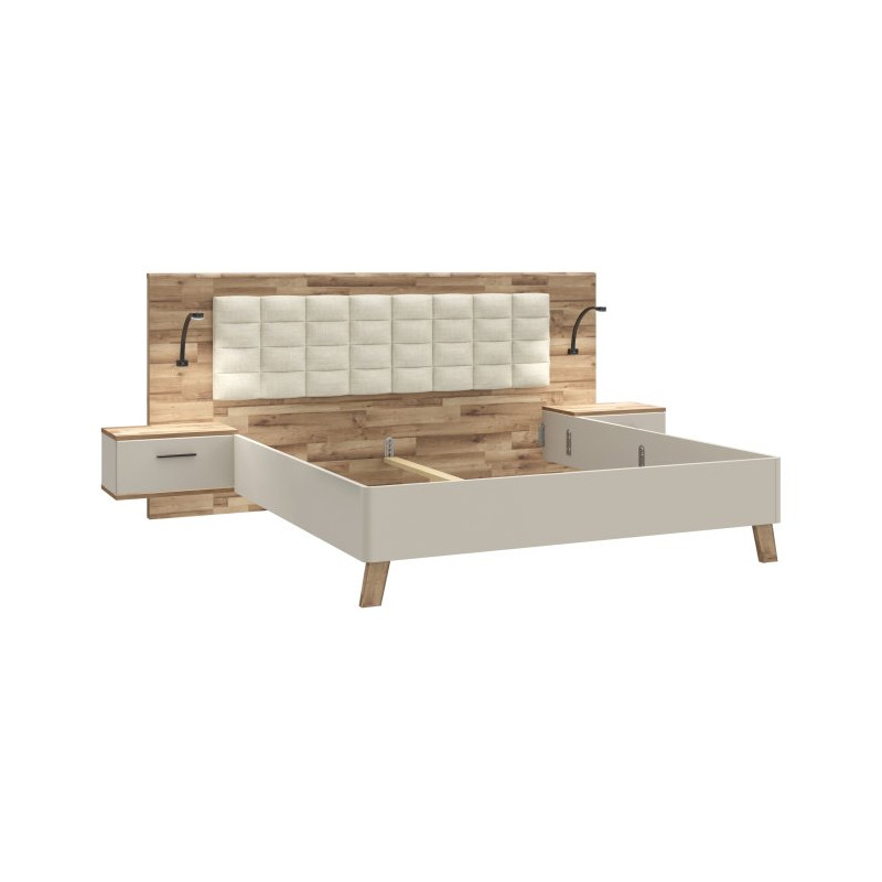 Łóżko + szafki nocne Ricciano RCQL1164B piaskowy / dąb klepkowy