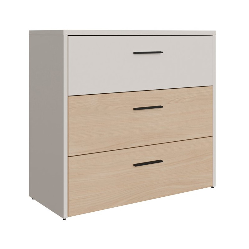 Trzy pojemne szuflady zapewniają wygodne miejsce do przechowywania, pomagając utrzymać porządek i dobrą organizację przestrzeni. Solidna konstrukcja oraz funkcjonalny układ sprawiają, że komoda jest komfortowa w codziennym użytkowaniu i spełnia oczekiwania nawet bardziej wymagających użytkowników.