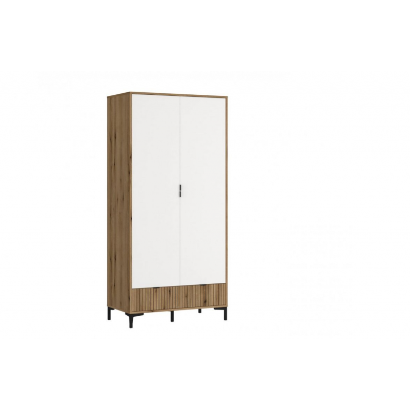 Szafa dwudrzwiowa RICKO zachwyci Cię nie tylko niezawodnością i dużą przestrzenią do przechowywania, ale także atrakcyjnym wyglądem zewnętrznym, który przyciąga wzrok. To nowoczesne mebel doskonale wpasuje się w różne style wnętrzarskie, takie jak industrialny, skandynawski, eklektyczny i vintage.