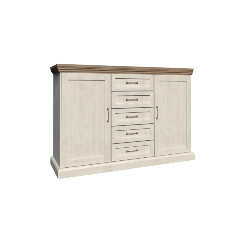 - podwójne drzwiczki z półkami oraz pięć szuflad