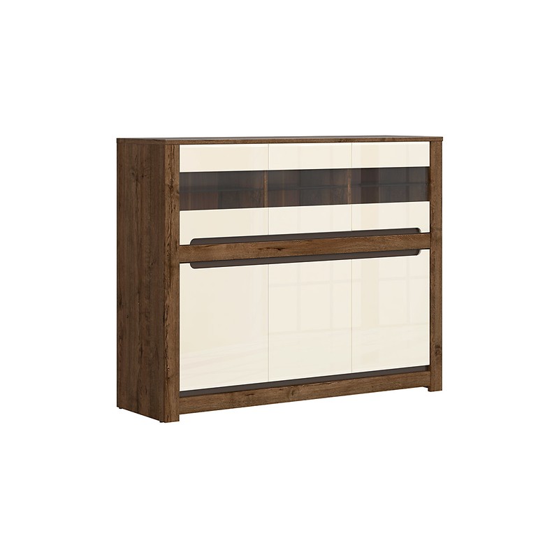- Witryna Ruso to efektowny mebel, który stanie się sercem Twojego salonu. Trzydrzwiowa witryna pozwoli wyeksponować drobne pamiątki, a 3 pełne fronty w dolnej części ułatwią przechowywanie. Szeroki blat też możesz wykorzystać pod zdjęcia rodzinne i wazon z kwiatami.