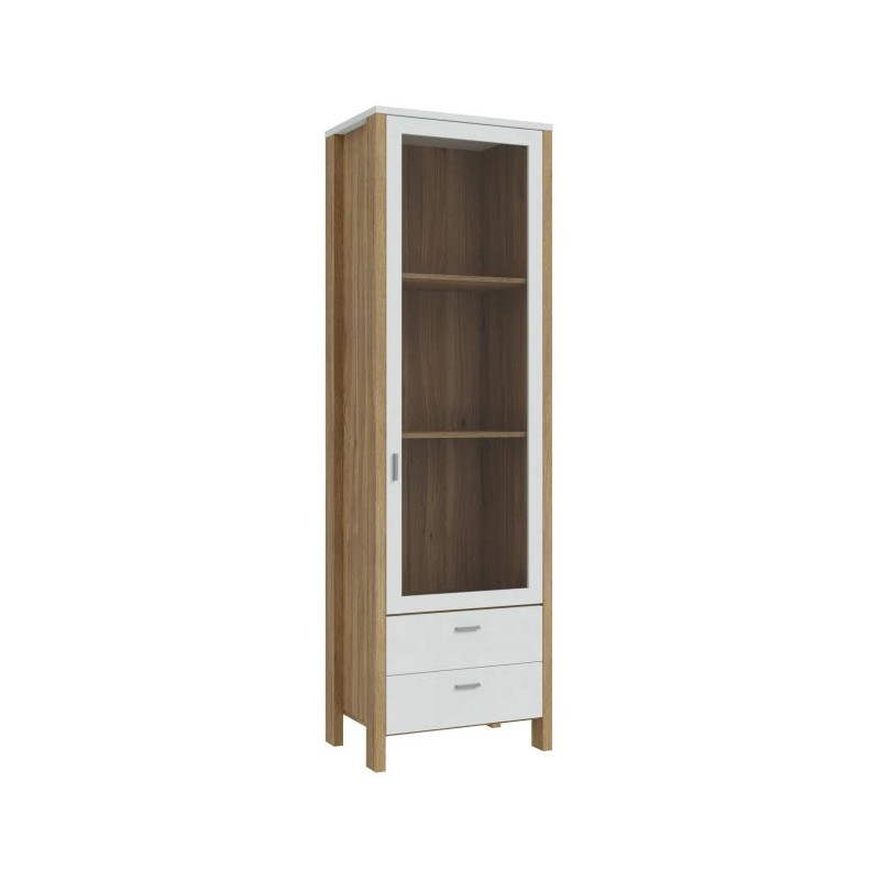 Wąska witryna SAITAMA 60 cm to elegancki mebel, który idealnie sprawdzi się w mniejszych przestrzeniach, oferując funkcjonalność i estetykę w jednym. Dzięki przeszklonym frontom możesz efektownie wyeksponować książki, pamiątki lub dekoracje, jednocześnie chroniąc je przed kurzem. 2 praktyczne szuflady na prowadnicach kulkowych pozwolą na uporządkowanie dokumentów i drobnych przedmiotów codziennego użytku.