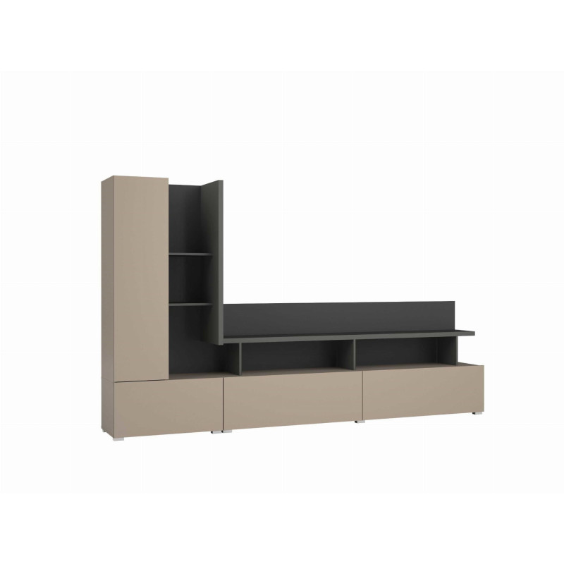 Wyraziste połączenie kolorów Congo, Antracyt i Czarny dodaje meblościance elegancji oraz nowoczesnego charakteru. To świetny wybór do salonu, pokoju dziennego lub przestrzeni wypoczynkowej urządzonej w stylu nowoczesnym, loftowym albo industrialnym. Ciemna, stonowana kolorystyka dobrze komponuje się z drewnem, betonem, beżem, szarością i metalowymi dodatkami.