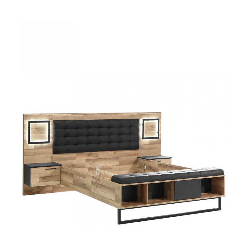 Łóżko z szafkami nocnymi i oświetleniem Sirius Crown SRCL1161B dąb czarny/dąb klepkowy