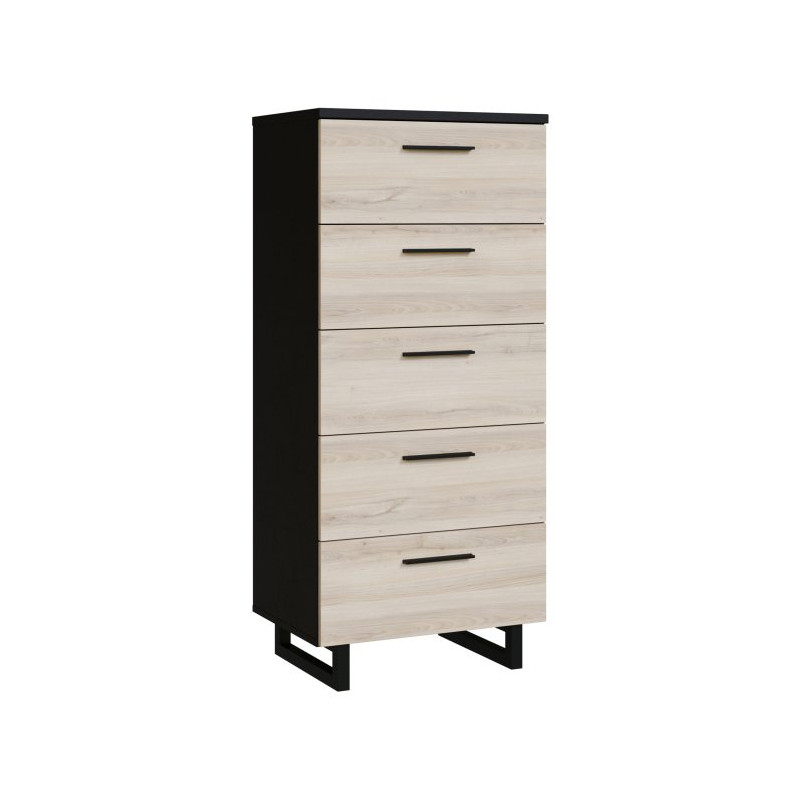Wyposażona w praktyczne szuflady, komoda umożliwia wygodne przechowywanie ubrań, dokumentów lub drobnych akcesoriów. Solidna konstrukcja oraz staranne wykonanie gwarantują trwałość i komfort użytkowania, a kompaktowy blat pozwala na ustawienie dekoracji lub najpotrzebniejszych przedmiotów.
