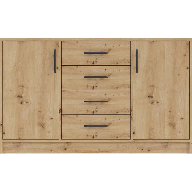 Komoda z kolekcji Smart w kolorze dąb artisan to nowoczesny i funkcjonalny mebel, idealnie pasujący do każdej sypialni. Wyposażona w cztery szuflady oraz dwoje drzwi, oferuje mnóstwo miejsca do przechowywania zarówno ubrań, jak i codziennych przedmiotów czy dekoracji. Jej przemyślany układ ułatwia organizację przestrzeni, pomagając w utrzymaniu porządku w Twoim wnętrzu.