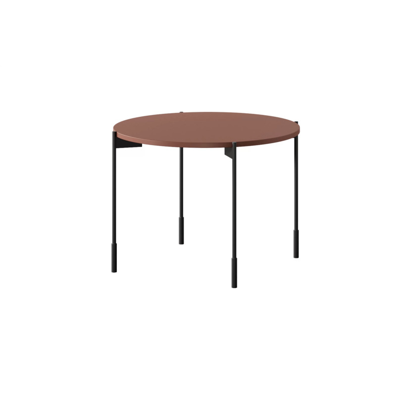 Stolik kawowy Sonatia to doskonały wybór do nowoczesnych salonów, który łączy elegancki design z funkcjonalnością. Wykonany z płyty MDF o grubości 18 mm, z matowym wykończeniem w głębokim burgundowym kolorze, stolik przyciąga uwagę swoją subtelną, ale wyrazistą barwą. Prosta forma blatu bez zbędnych zdobień i uchwytów doskonale współgra z metalowymi nóżkami malowanymi proszkowo na kolor czarny. Wysokość nóg wynosząca 40 cm sprawia, że mebel ma stabilną konstrukcję, jednocześnie dodając lekkości całemu wnętrzu.