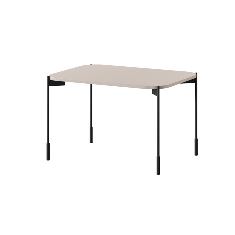 Stolik kawowy oferuje kompaktową, ale funkcjonalną powierzchnię, idealną do przechowywania napojów, książek czy dekoracji. Jego minimalistyczny wygląd sprawia, że doskonale wpisuje się w różnorodne style aranżacji wnętrz, od nowoczesnego po skandynawski. Dzięki zastosowaniu materiałów wysokiej jakości, takich jak płyta MDF i malowane proszkowo metalowe nogi, stolik jest nie tylko estetyczny, ale i trwały. Obrzeża wykończone ABS zapewniają odporność na uszkodzenia i wpływ codziennego użytkowania.