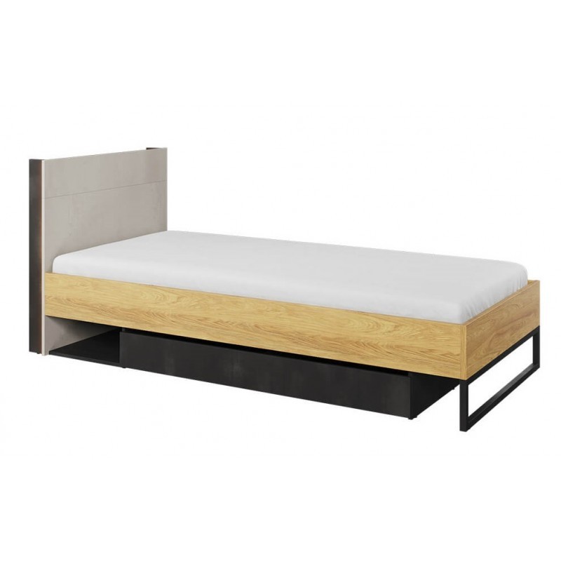To ponadczasowe i komfortowe łóżko dla nastolatków, wyposażone w stelaż szczebelkowy. Jego wysoki zagłówek nie tylko nadaje mu charakteru, ale przede wszystkim zapewnia wygodę plecom podczas relaksu, oglądania filmów czy czytania książek. Dodatkowo, zagłówek posiada praktyczną półkę, a całość jest uzupełniona o energetyzujące oświetlenie w bursztynowej barwie. Poniżej części z materacem znajduje się praktyczna szuflada, idealna do przechowywania pościeli i koców. Wygodne łóżko dla nastolatków stanowi niezbędny element podczas aranżacji wnętrza. Kolekcja mebli Teen Flex wyróżnia się możliwością łączenia różnych brył w różnorodne zestawy, dając Ci szeroki zakres możliwości w kwestii aranżacji wnętrza.