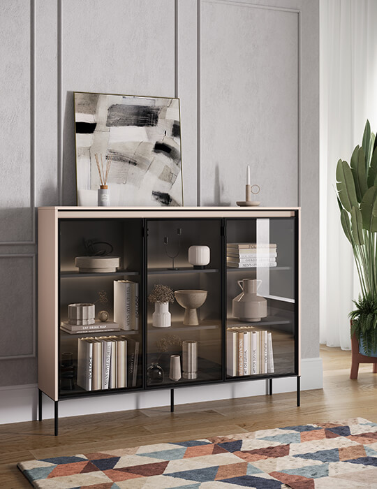 Witryna to niezwykle funkcjonalny mebel, który wzbogaca estetykę pomieszczenia, w którym się znajduje. Nasza witryna wykonana ze szkła to prawdziwa ozdoba i idealne uzupełnienie różnych stylów aranżacji w salonie. Jej prosty, nowoczesny wygląd pozwalają doskonale dopasować ją do wnętrz o charakterze zarówno nowoczesnym, skandynawskim, jak i industrialnym. Dzięki przezroczystym szklanym drzwiom, witryna prezentuje się lekko i przestronnie. Dodatkowo, podświetlenie, które jest integralną częścią mebla, podkreśla jego urok i pozwala na efektowne eksponowanie ulubionych dekoracji i przedmiotów.