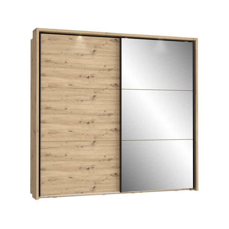 Szafa przesuwna z lustrem i oświetleniem 230 cm Trondheim TDHS9233B dąb artisan