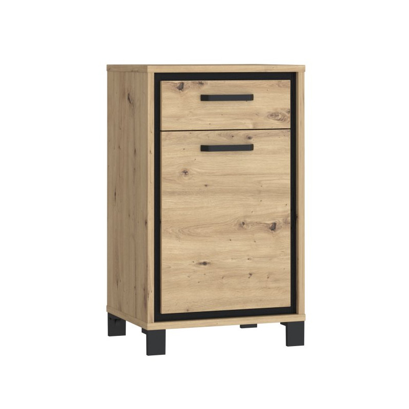 Komoda loft 90 cm z szufladą Trondheim TDHK222 dąb artisan / dąb czarny