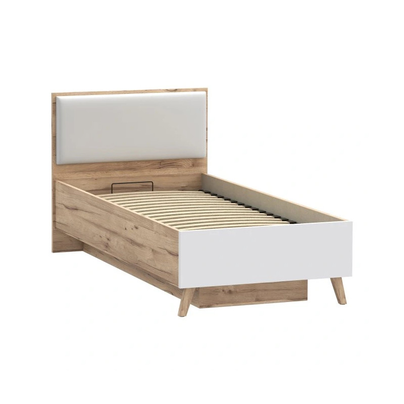 Wbudowany pojemnik na pościel, lekki mechanizm podnoszenia materaca oraz stylowy zagłówek czynią z tego mebla nie tylko miejsce do spania, ale również przemyślane centrum organizacji sypialni. To wybór, który odmienia codzienność i ułatwia utrzymanie porządku.