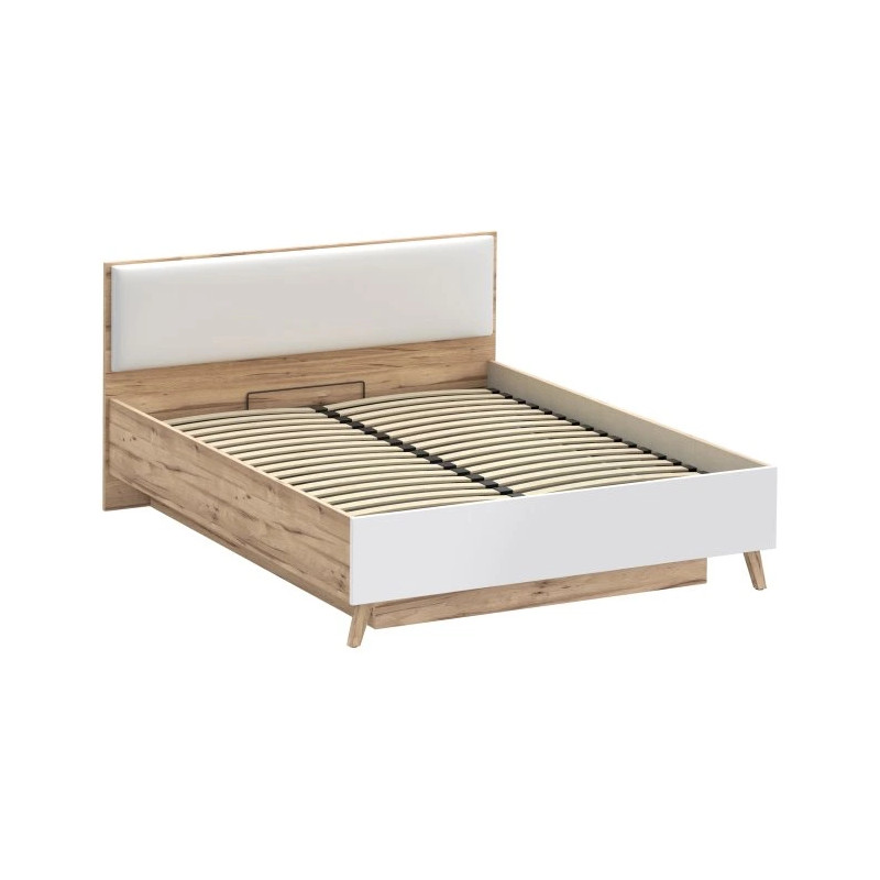 Dzięki podnoszonemu stelażowi łóżko oferuje obszerny pojemnik na pościel — idealne miejsce na koce, kołdry czy sezonowe tekstylia. Solidna konstrukcja i nowoczesny zagłówek zapewniają stabilność oraz wygodę użytkowania każdego dnia. Wzornictwo łączy dębowy dekor z elegancką bielą, co sprawia, że mebel świetnie komponuje się z wieloma stylami aranżacyjnymi.