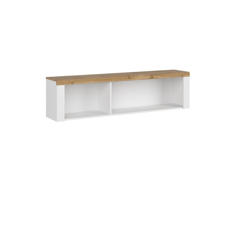 Regał wiszący VIGO 160 biały połysk / dąb wotan to funkcjonalny mebel ścienny, który pomaga dobrze wykorzystać wolną przestrzeń i jednocześnie uzupełnia aranżację wnętrza w nowoczesnym stylu. Otwarta forma sprawia, że regał świetnie nadaje się do eksponowania książek, dekoracji, pamiątek czy drobnych akcesoriów. To bardzo dobry wybór dla osób, które szukają nowoczesnego regału wiszącego do salonu, pokoju młodzieżowego lub home office.