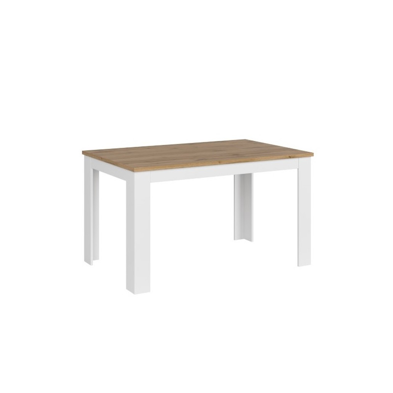 Stół rozkładany VIGO 135/184 biały połysk / dąb wotan to funkcjonalny mebel do jadalni lub salonu, w którym liczy się wygoda codziennego użytkowania oraz możliwość szybkiego powiększenia blatu podczas spotkań z rodziną i gośćmi. Połączenie bieli z blatem w dekorze dąb wotan nadaje całości nowoczesny, a zarazem uniwersalny charakter. To świetny wybór dla osób, które szukają rozkładanego stołu do nowoczesnej jadalni o prostym i eleganckim wyglądzie.