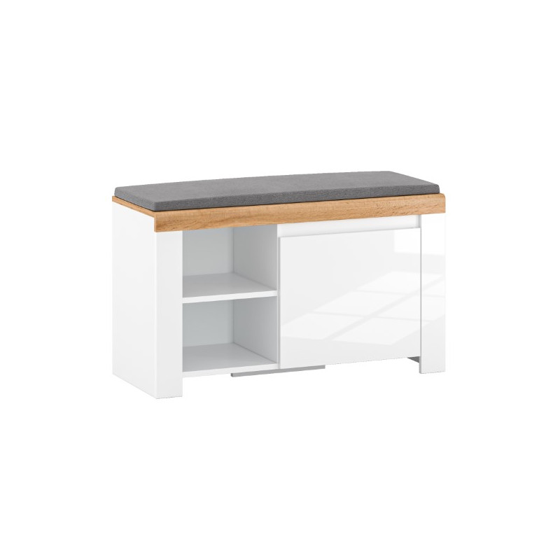 Szafka na buty z siedziskiem VIGO biały połysk / dąb wotan to praktyczny mebel do przedpokoju, który pomaga uporządkować codzienną przestrzeń przy wejściu do domu. Jasna kolorystyka sprawia, że bryła dobrze rozświetla korytarz, a połączenie białego połysku z dekorem dąb wotan nadaje całości nowoczesny i uniwersalny charakter. To bardzo dobry wybór dla osób, które szukają nowoczesnej szafki na buty z siedziskiem do przedpokoju. :contentReference[oaicite:0]{index=0}