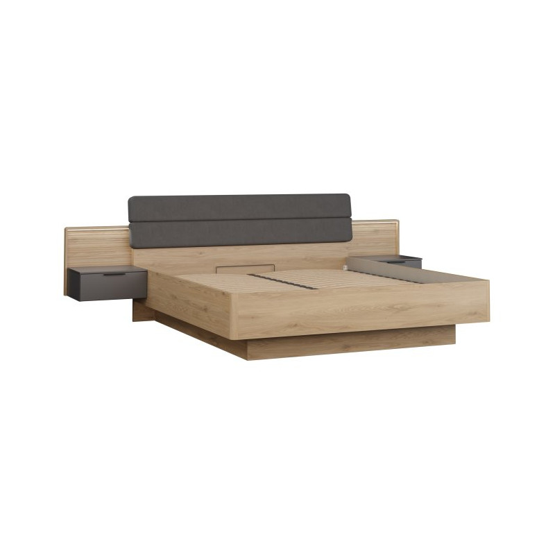 Łóżko z podnoszonym wkładem 180x200 cm Vulpecula VULL1182B dąb dziki naturalny/uni wolfram szary